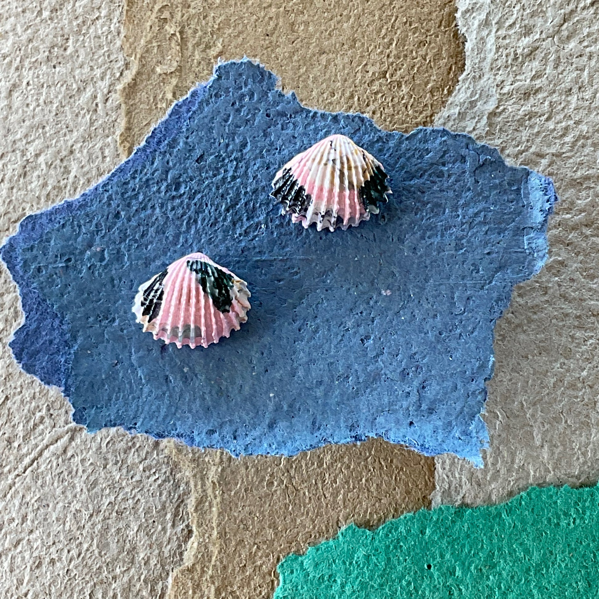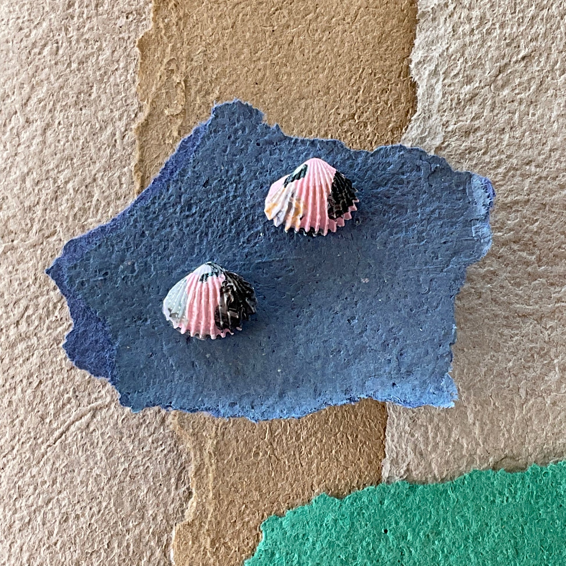 Pretty pink shell studs. A light shimmer and chunky terrazzo.